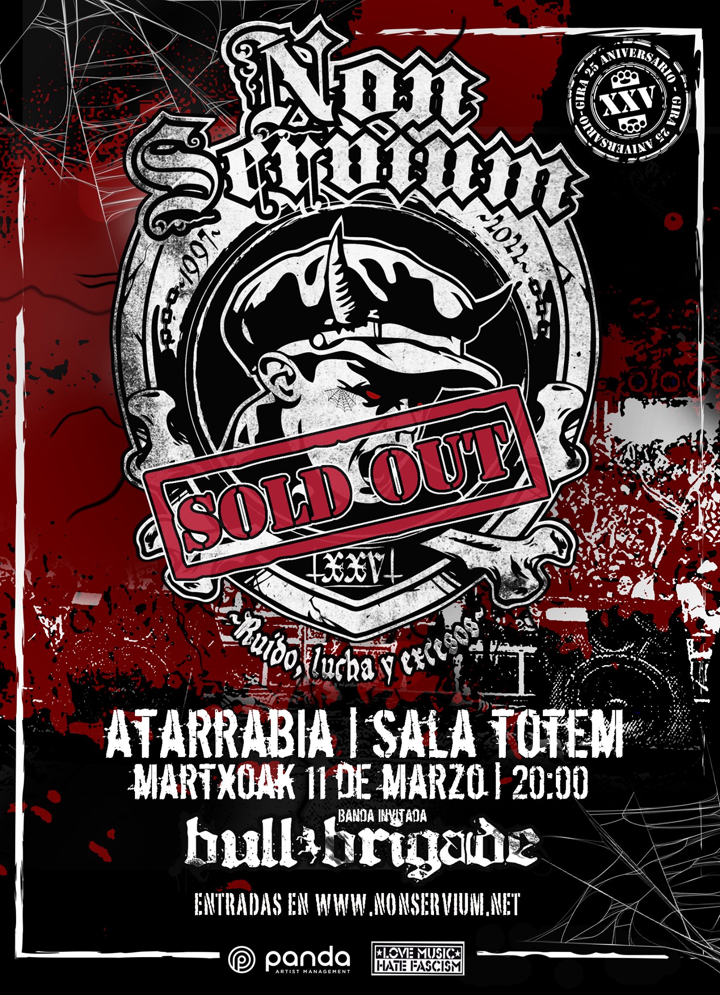 EUSKARA Facebook Twitter Instagram Youtube NON SERVIUM+ BULL BRIGADE (SOLD OUT) Entradas Físicas Entradas Online Sold out Hora Apertura: 20:00 Concierto: 20:30 Precio