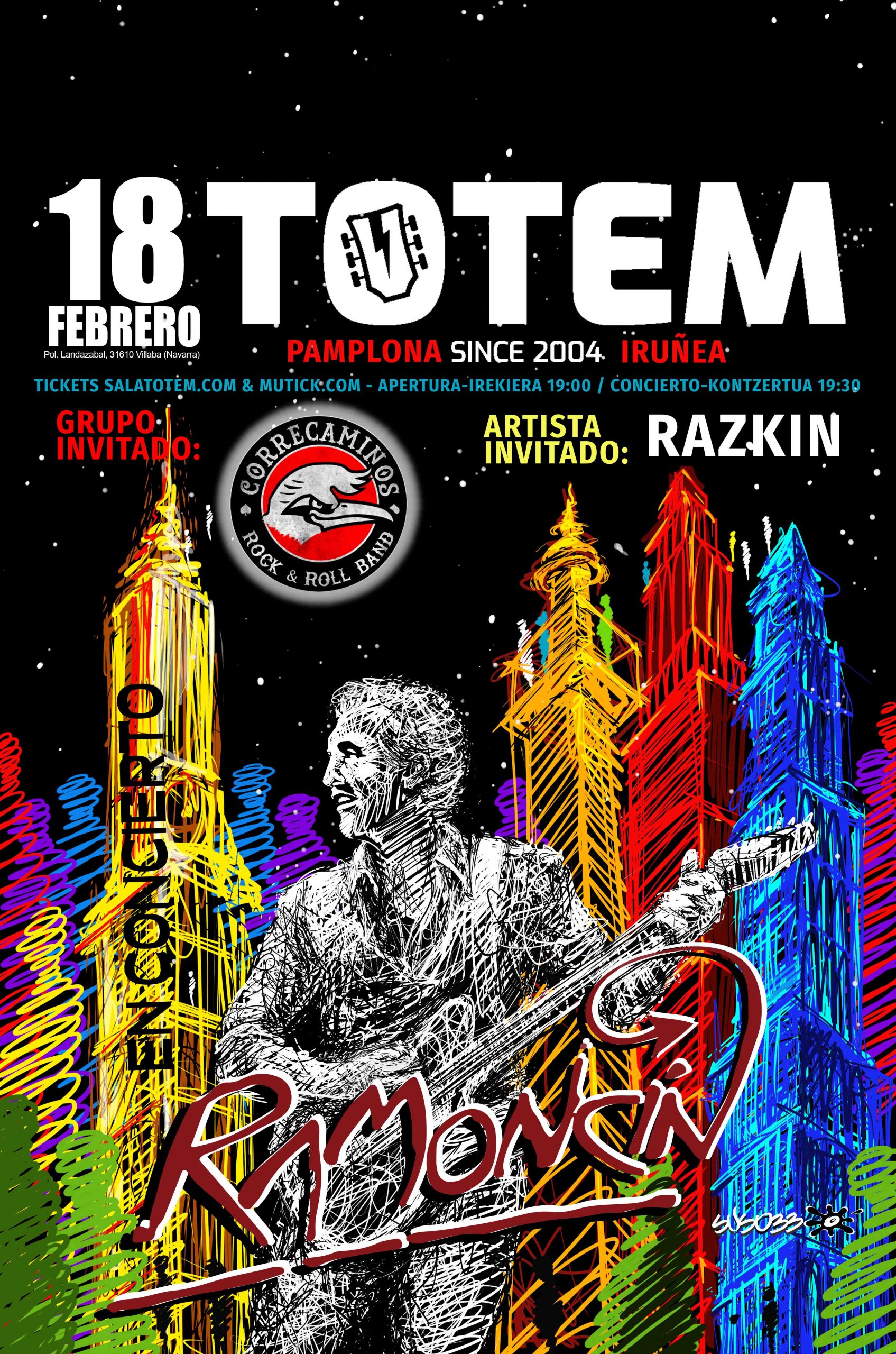 Ramoncín actuará en Pamplona el 18 de febrero de 2023, donde ofrecerá un concierto de 2 horas y media haciendo un repaso a su extenso repertorio. ‘Miedo a Soñar’, ‘Rockandroll dudua’, ‘Putney Bridge’, ‘Hormigón, Mujeres y Alcohol’, ‘Al Límite’ o ‘La cita’ sonarán entre otros muchos más éxitos de Ramoncín.