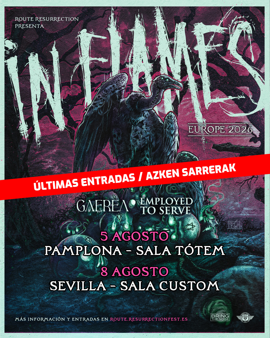 Los pioneros del death metal melódico, In Flames, actuarán el próximo verano con dos conciertos exclusivos en sala: 5 de agosto en Pamplona (Sala Tótem) . La banda sueca repasará sus más de tres décadas de trayectoria acompañada por dos invitados de lujo: los portugueses Gaerea y los británicos Employed To Serve.