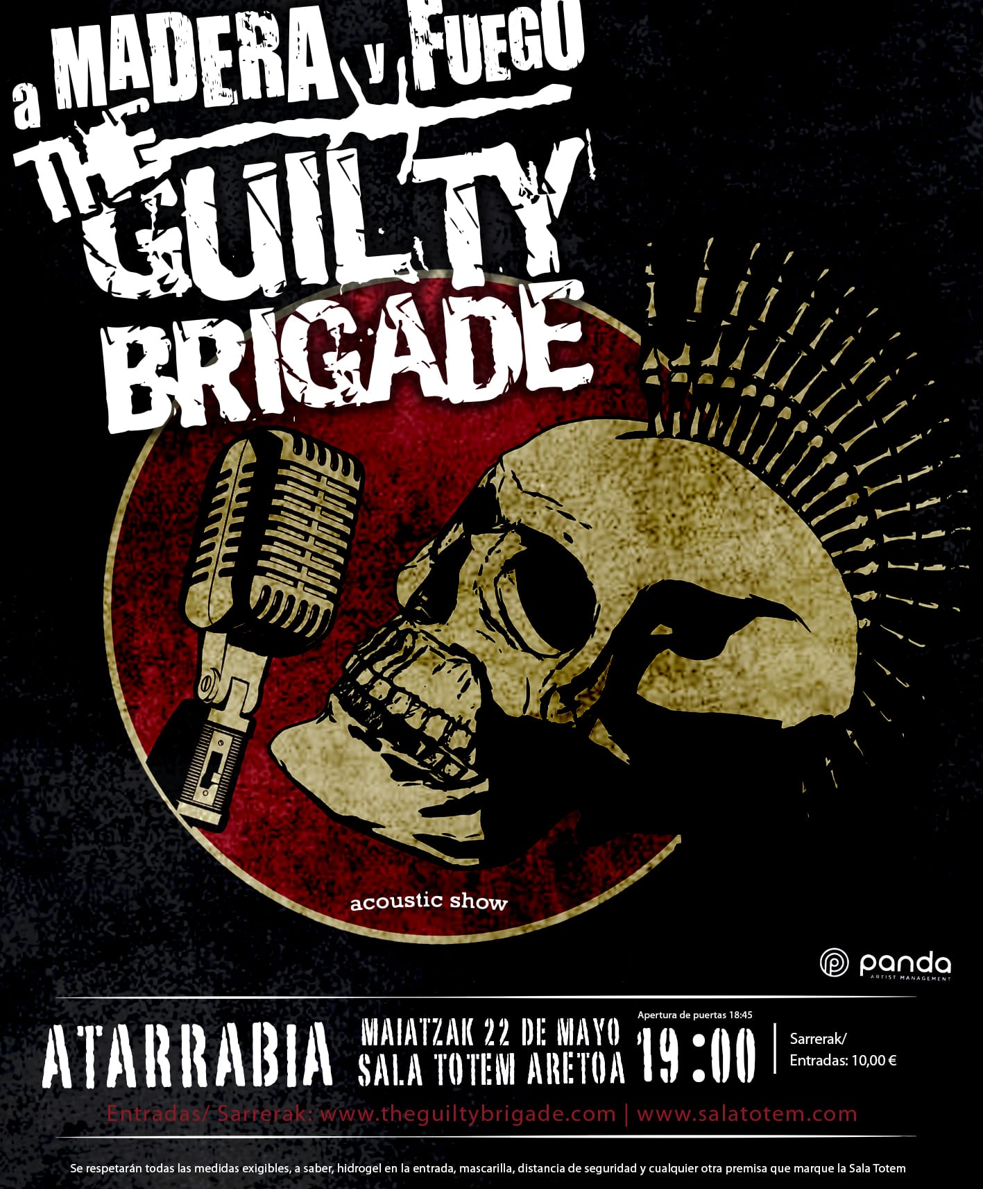 CASTELLANO Facebook Twitter Instagram Youtube THE GUILTY BRIGADE “A MADERA Y FUEGO” Sarrera Fisikoak Sarrerak Online Musikaze Ordua Irekiera: 18:45h Kontzertua: 19:00h Prezioa Aurretik: 10€ + Gastuak Leihatila: €