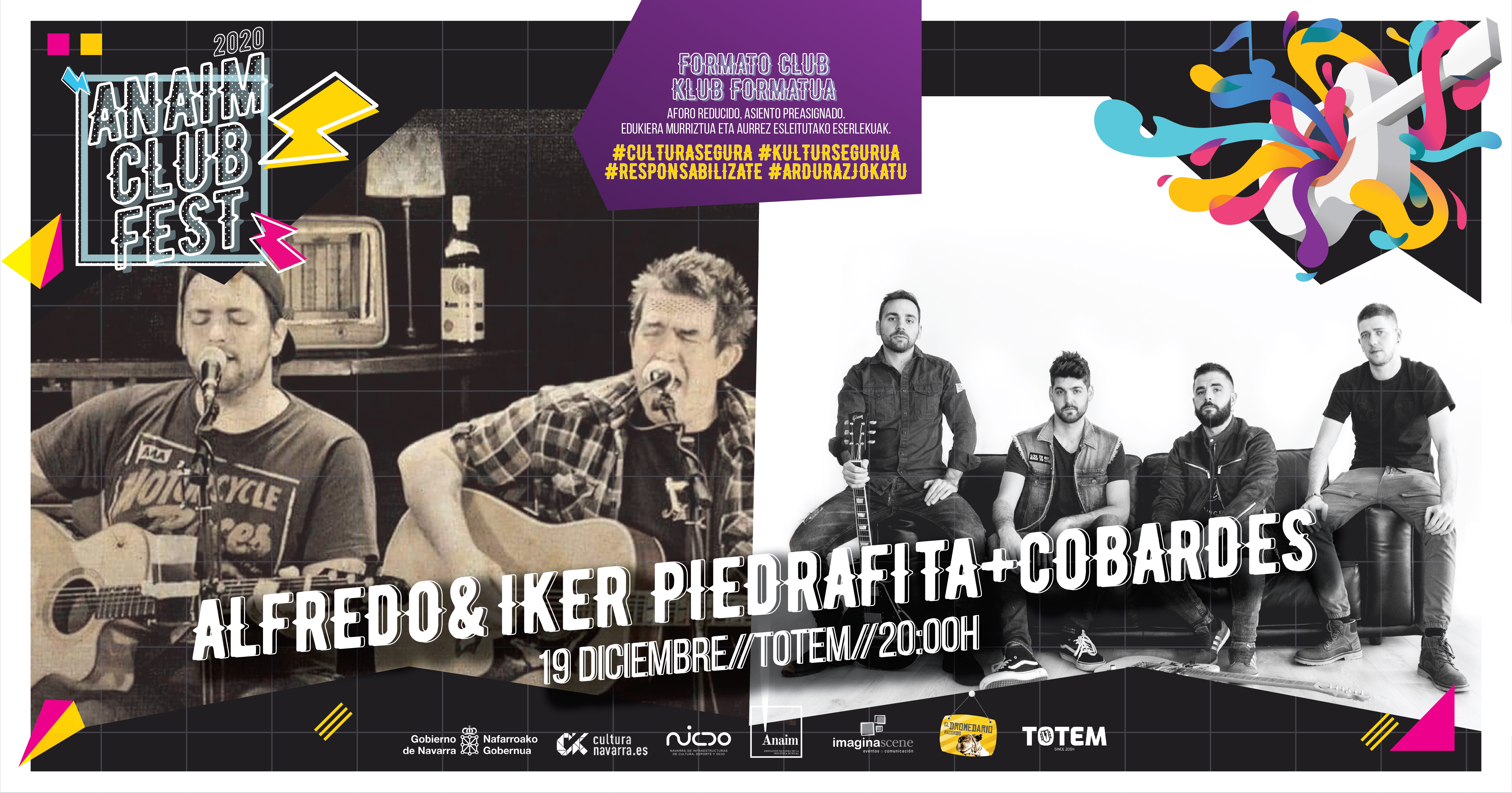 CASTELLANO Facebook Twitter Instagram Youtube IKER & ALFREDO PIEDRAFITA COBARDES 2016an Javier Janices “Cordobes”en proiektu pertsonal bezala jaio zen COBARDES. 2020an bere azken lana kaleratu dute “Ceniza y viento”. Sarrerak Online Musikaze Ordua Irekiera: 19:30h Kontzertua: 20:30h Prezioa Aurretik: 12€ + Gastuak Leihatila: 15€