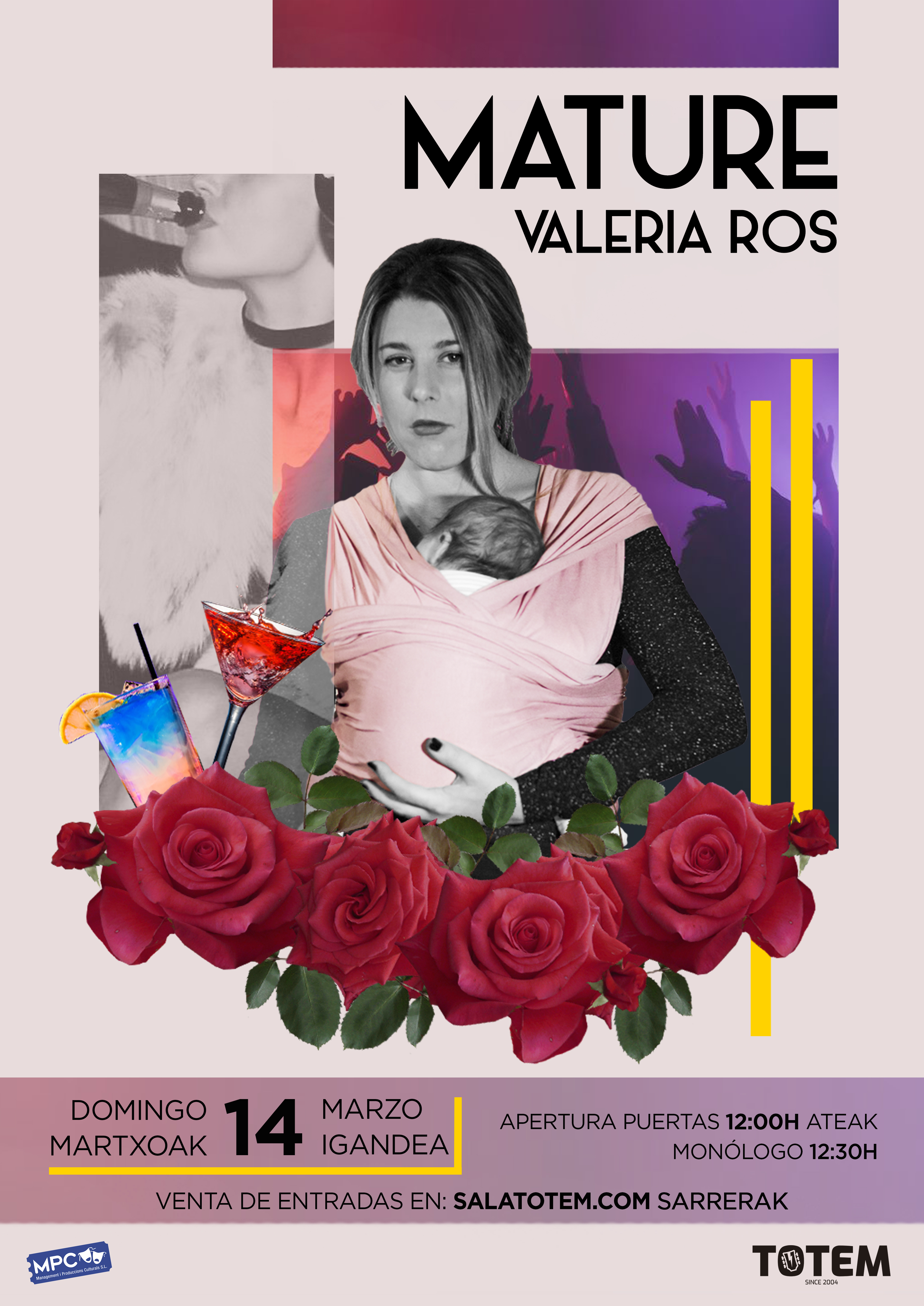 EUSKARA Facebook Twitter Instagram Youtube VALEIA ROS MATURE La pandemia se le ha complicado más de la cuenta a Valeria Ros. El segundo día de confinamiento se enteró de que estaba embarazada de su ex y ahí es cuando germinó la semilla de “Mature”, su nuevo espectáculo de comedia. “Mature” es una reflexión sobre los […]
